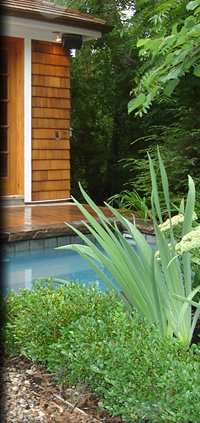 We added pergolas and decks on the front and back of the house and on the cabana to create continuity in the architectural design of the house and garden.